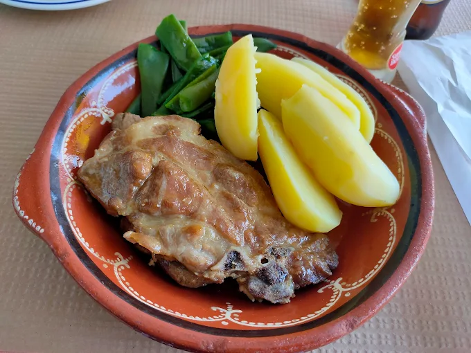 Pratos tradicionais,como frango de churrasco, negalhos à bairrada, chanfana, cozido à portuguesa, carne de porco à alentejana entre outros